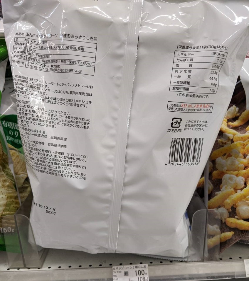 Family Mart Crispy Fluffy Popcorn with Two Kinds of Salt back of package ← Previous Next → Like Loading...