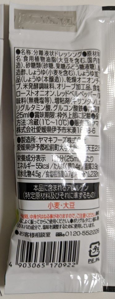 Family Mart Reduced-Sodium Japanese Dressing back of package