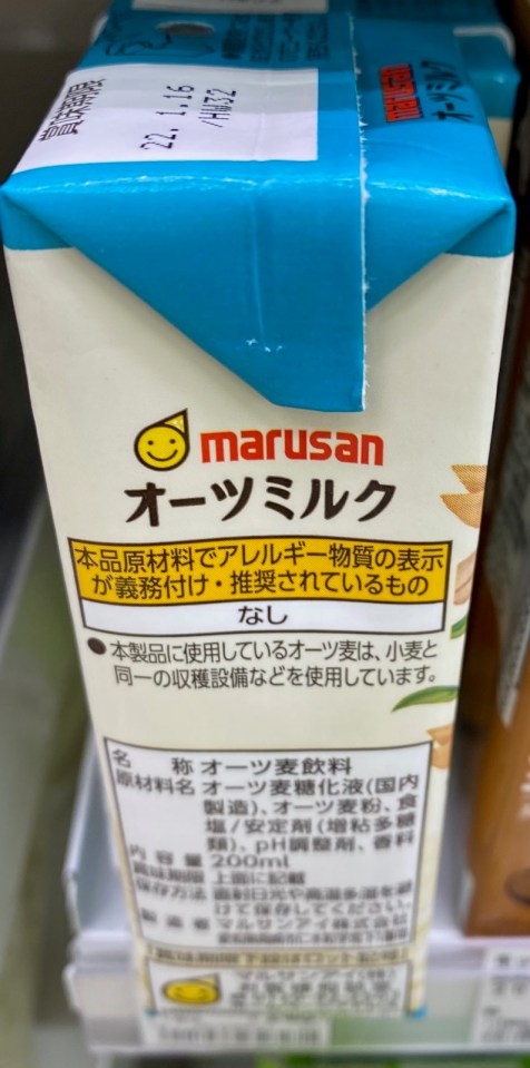 Marusan Oat Milk ingredient panel, Lawson