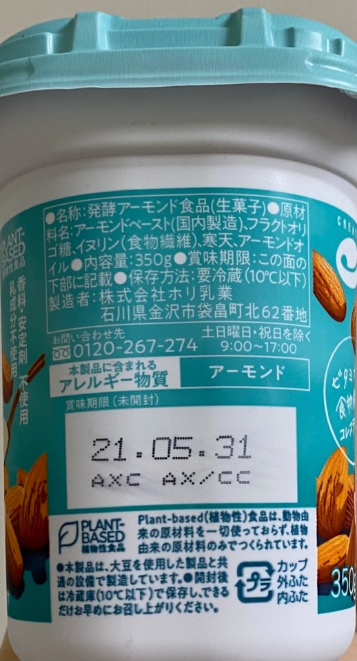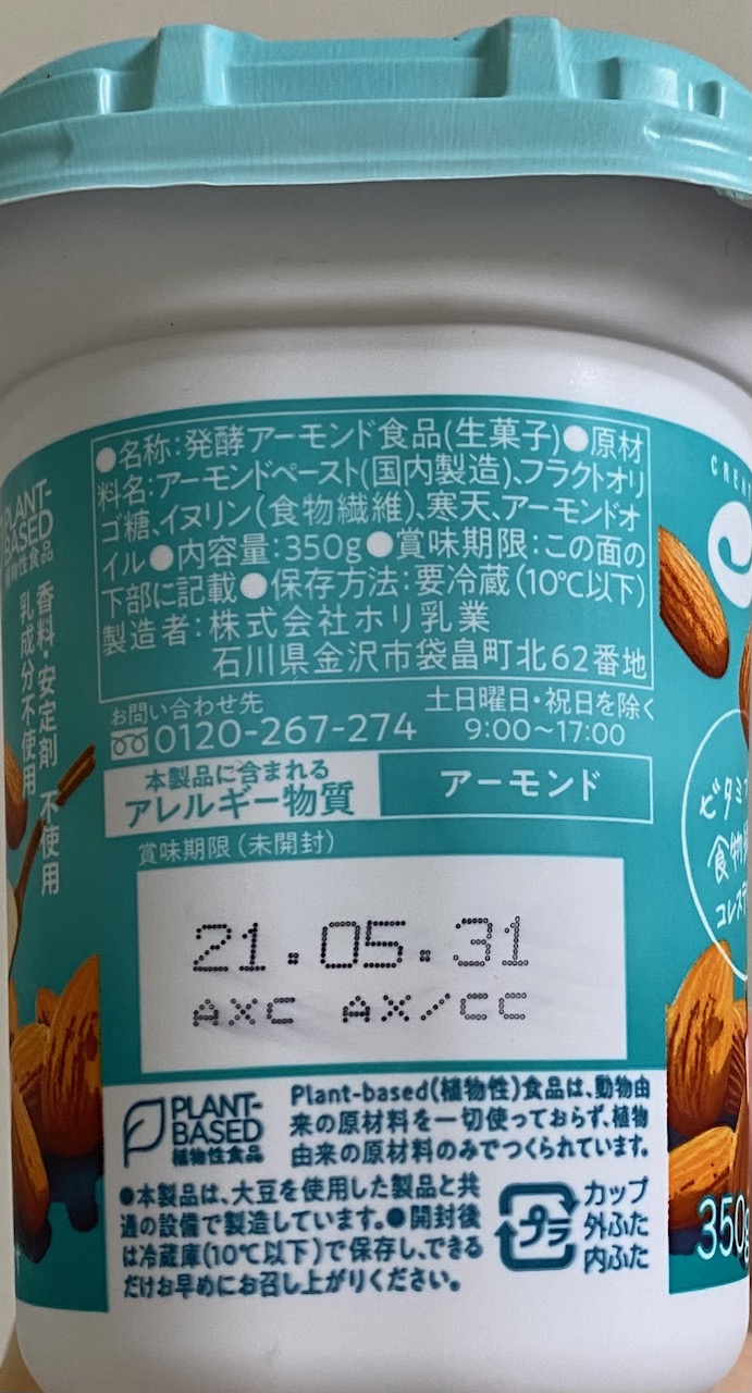 Kokubu Foods The Almond Milk Yogurt side panel