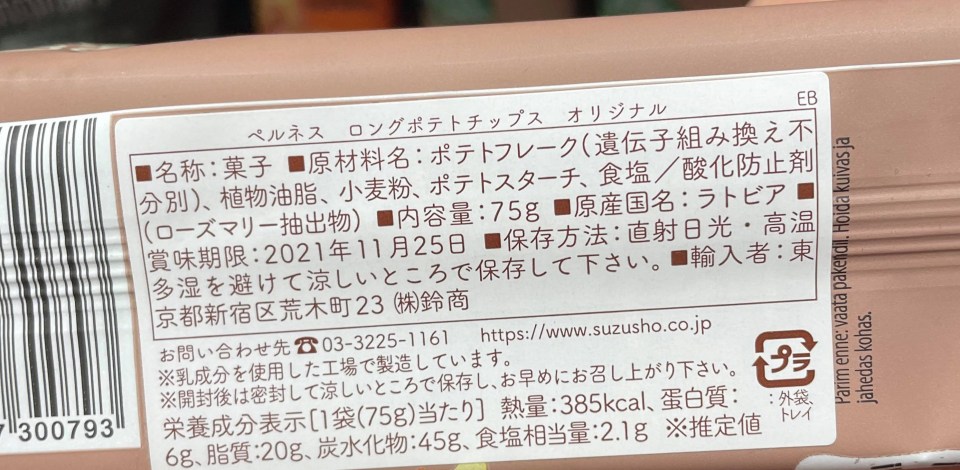 Pernes Long Chips, Original, back of package
