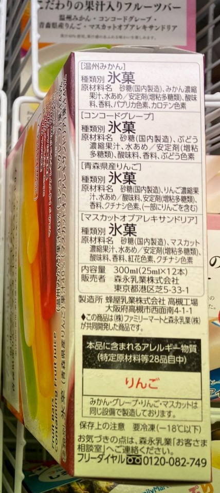 Family Mart Fruit Bars Containing Fruit Juice ingredient list