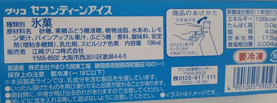 glico seventeen ice cider back of package