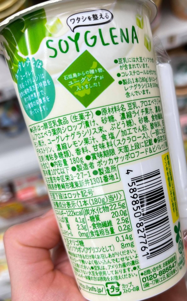 Pokka Sapporo Soyglena Soy Yogurt Drink, Aloe, back of package 3