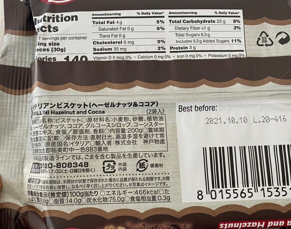Dolcezze & Sapori Italian Snack Biscuits with Cocoa and Hazelnuts back of package ← Previous Next → Like Loading...