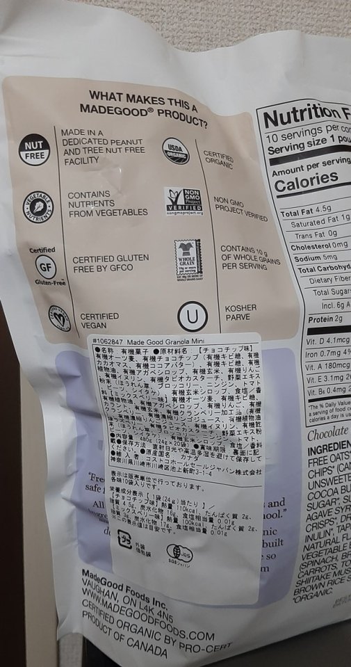 Made Good Granola Minis back of package