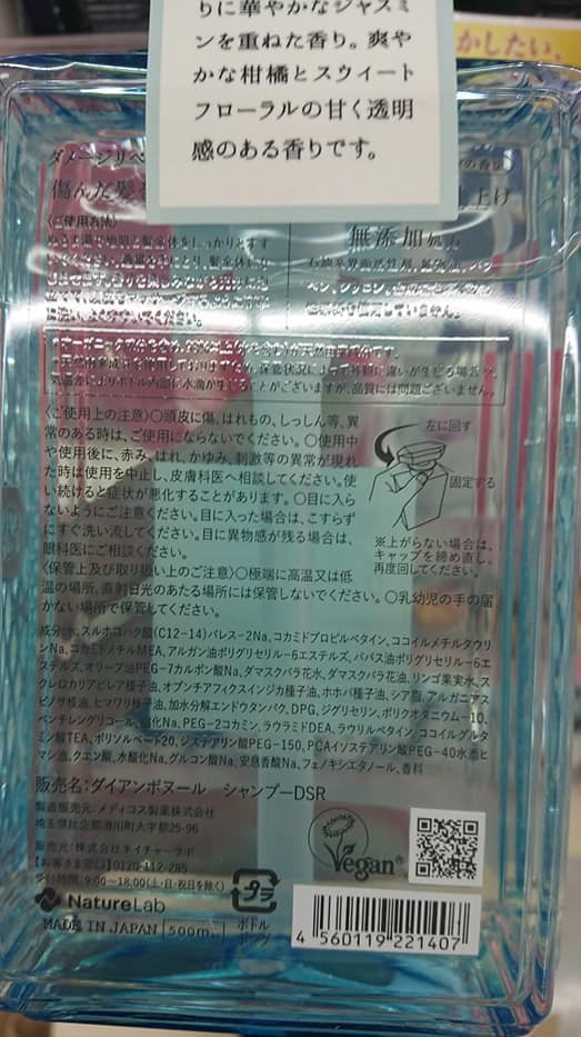 Diane Bonheur Blue Jasmine Shampoo, Vegan Society certified, back of package ← Previous Next → Like Loading...