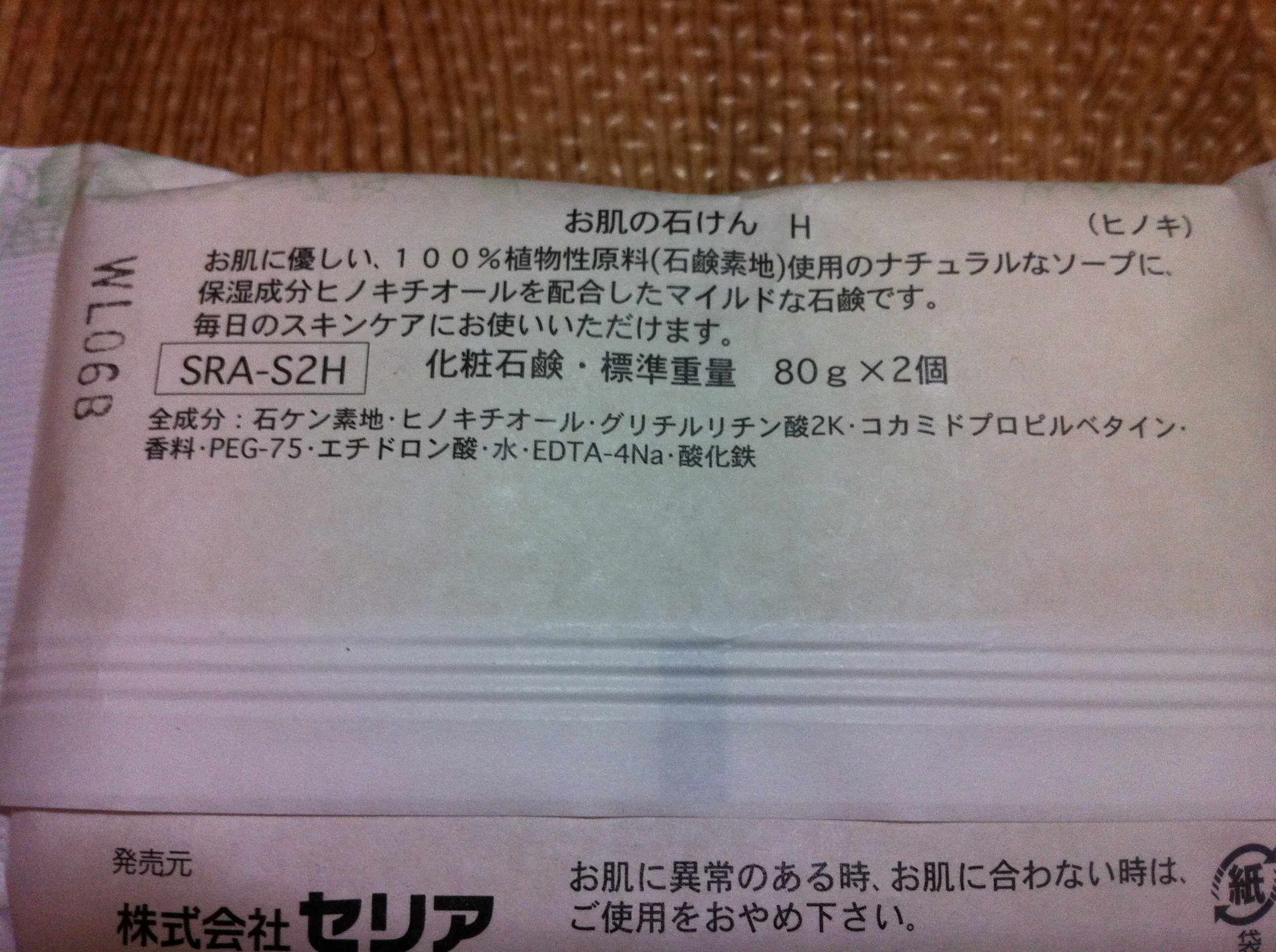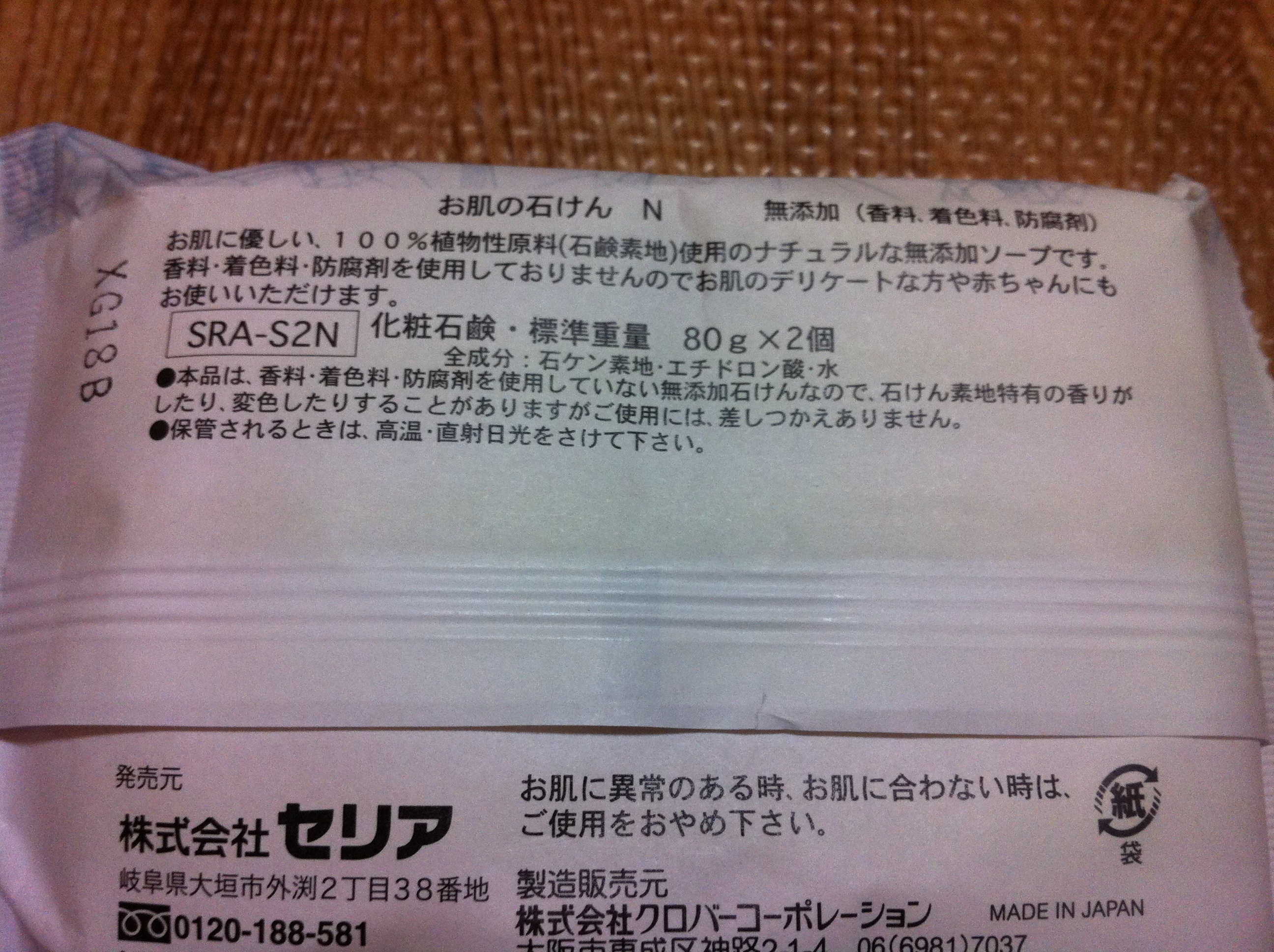 toe toe foot soap front of package    20191127_161126 Their Foot Sheets are a single-use cleansing product. toe toe Silken Foot Soap/toetoe(トゥトゥー) フットシート 20191202_170051 (2) Per Aeon customer service, TopValu Medicinal Foaming Hand Soap with Hyaluronic Acid, Citrus Fragrance, can not be described as vegan/completely of plant origin, but it does not contain animal-derived ingredients. It contains mineral and chemically synthesized raw materials. TopValu Medicinal Foaming Hand Soap with Hyaluronic Acid, Citrus Fragrance/薬用 泡ハンドソープ シトラスの香り ヒアルロン酸配合 TopValu Medicated Hand Soap Citrus Fragrance Yamato Cosmetics (Japanese website) has a vegan soap that is sold on the internet and at vegan festivals. It is also sold at a few stores in Nara and Osaka, which are listed on its website. It is a Nara-based product line that also includes two other products, a skin serum and a sheet mask, both of which are also vegan. From autotranslate: “The grace of Yamato makes women beautiful and beautiful. Yamato Cosmetic is richly blended with natural products such as mulberry leaves, lotus root, rapeseed oil, black rice, yuzu, gourd water, and agricultural products derived from Nara Prefecture’s foods and natural water. Moreover, “Vegan Cosmetic” is being designed with a complete non-animal component that is a global trend. We will deliver the gentleness of natural ingredients that lasts from the Yamato period to your skin.” • Yamato Cosmetics Persimmon Leaf Facial Soap/Yamato Cosmetics 柿の葉洗顔石けんIngredients: Soap base (contains potassium), rapeseed oil, sorbitol, persimmon leaf, glycerin, coconut fatty acid, bentonite, cocamidopropyl betain, water, persimmon leaf extract, lotus root extract, rice extract, persimmon tannin, pentasodium pentetate, tetrasodium etidronate, butylene glycol. Formulated with moisturizing ingredients like persimmon leaf and rapeseed oil. No fragrance, color, parabens, or mineral oil are used. The photo on the left shows special souvenir packaging that is sold in stores. Packaging may vary when the product is purchased online. 20190421_153336    20190421_153408 (2) Just like other countries, there are a number of small and home-based businesses making soaps. Some examples of these are Shizen Natura and Yotsuba Labo. Shizen Natura (English) is a small business making all vegan soaps without palm oil. They also understand zero-waste. Yotsuba Labo (Japanese) is a small Japanese brand selling vegan soap bars online, certified by VegeProject Japan. They also sell certified vegan dish soap. ANIMAL-BASED SOAPCow Brand Beauty Soap is made from beef tallow and also contains milk ingredients. 20190216_165335 (2) (1)Pelican Soap may contain beef tallow. The ‘Factory Information’ on the company’s English website lists the raw ingredients of their soaps as vegetable soap chips and “soap chips with cow fat and palm tree oil.” The photo below is also from their website. pelican-soap-from-their-website1 However, there is a type of soap on the Pelican website, the Kettle-Fired, Pure Plant Additive-Free Soap, that is listed as being free of animal ingredients, dōbutsu yurai seibun furī/動物由来成分フリー. Per the listing, it contains palm oil. Most likely the product would need to be purchased online. Photo from website. •  Pelican Kettle-Fired, Pure Plant Additive-free Soap/釜焚き・純植物無添加石けん. Pelican Soap, free of animal ingredientsReckitt Benckiser Muse Medicated Soap (ミューズ) is not vegan according to an email received from Reckitt Benckiser in late 2014. 20190216_165341 (2) (1).jpg This post contains some affiliate links, and if you follow one of those links and then purchase a product you help support this blog without any additional cost to you. Thank you so much for your kind support!